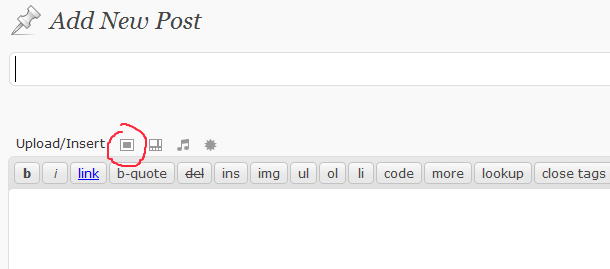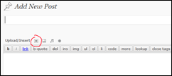 Create un nuovo post, scrivete quello che volete e poi usate l’icona evidenziata in figura per aggiungere un file (cliccate sull’immagine per ingrandirla):