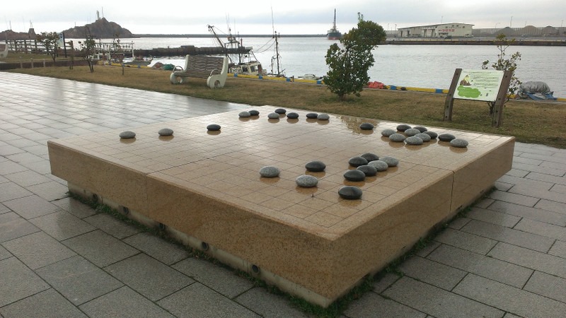 Proseguo la segnalazione di siti storici legati al gioco del Go. Quello che vedete nella foto è il monumento eretto a memoria dell’introduzione del Go in Giappone ad opera del leggendario funzionario Kibi no Makibi. Se non ho tradotto male la pagina da cui è tratta la foto, la leggenda narra che Kibi, di ritorno da una missione diplomatica in Cina, fece naufragio con la sua nave nei pressi di un isolotto di fronte al porto di una cittadina giapponese che oggi si chiama Tottori. Gli abitanti lo aiutarono a raggiungere la terraferma e la madrepatria, e per ringraziarli egli insegnò loro il gioco del Go. Non è certo se le cose andarono proprio così, quello che è certo è che vicino al porto di Tottori è stato costruito questo monumento per commemorare un evento storico tanto importante, e nel vicino tempio Shintō il buon Kibi viene venerato come una divinità. Pare anche che ogni 2 anni si tenga un grande festival in onore suo e del Go.